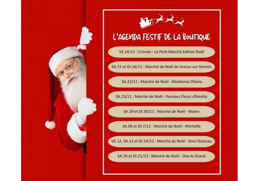 Comme chaque année, je vous donne rendez-vous sur plusieurs marchés et événements pour découvrir mes créations artisanales, discuter, et trouver l’inspiration parfaite pour vos cadeaux de Noël!