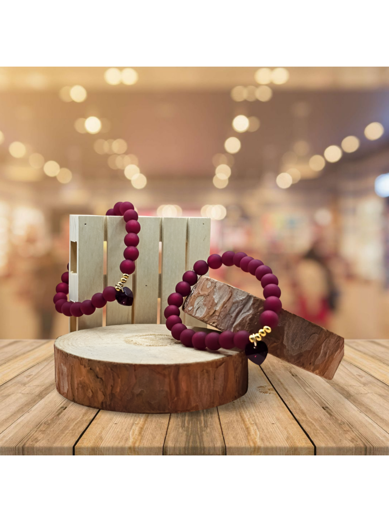 Bracelet Perles monté sur élastique avec un cœur en cristal autrichien
