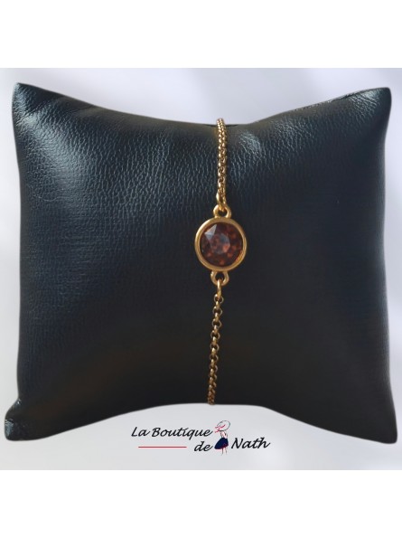 Bracelet acier réglable avec perle de serrage agrémenté d'un pierre cristal de 8 mm