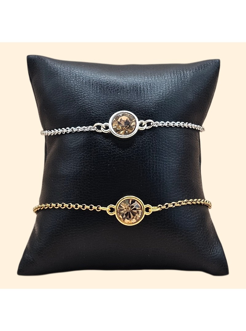Bracelet acier réglable avec perle de serrage agrémenté d'une pierre cristal de 8 mm