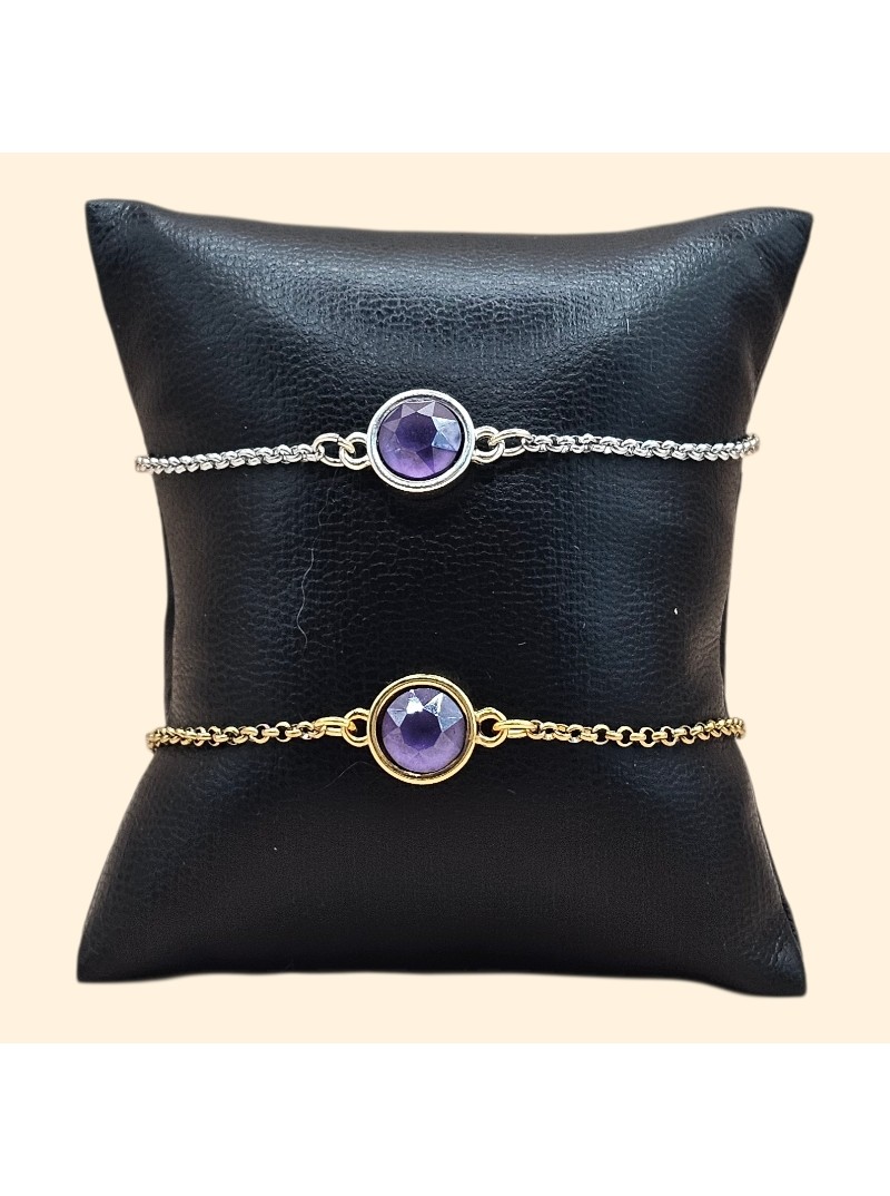 Bracelet acier réglable avec perle de serrage agrémenté d'une pierre cristal de 8 mm