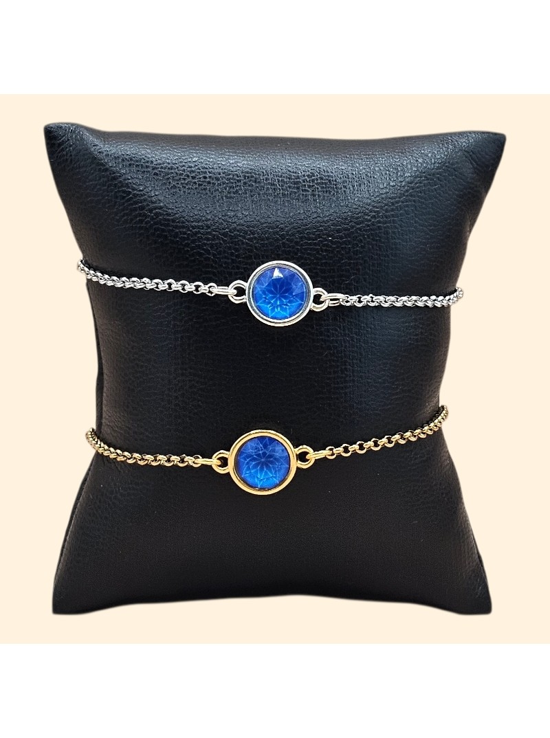 Bracelet acier réglable avec perle de serrage agrémenté d'une pierre cristal de 8 mm