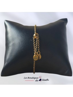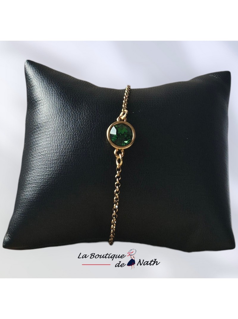Bracelet acier réglable avec perle de serrage agrémenté d'un pierre cristal de 8 mm