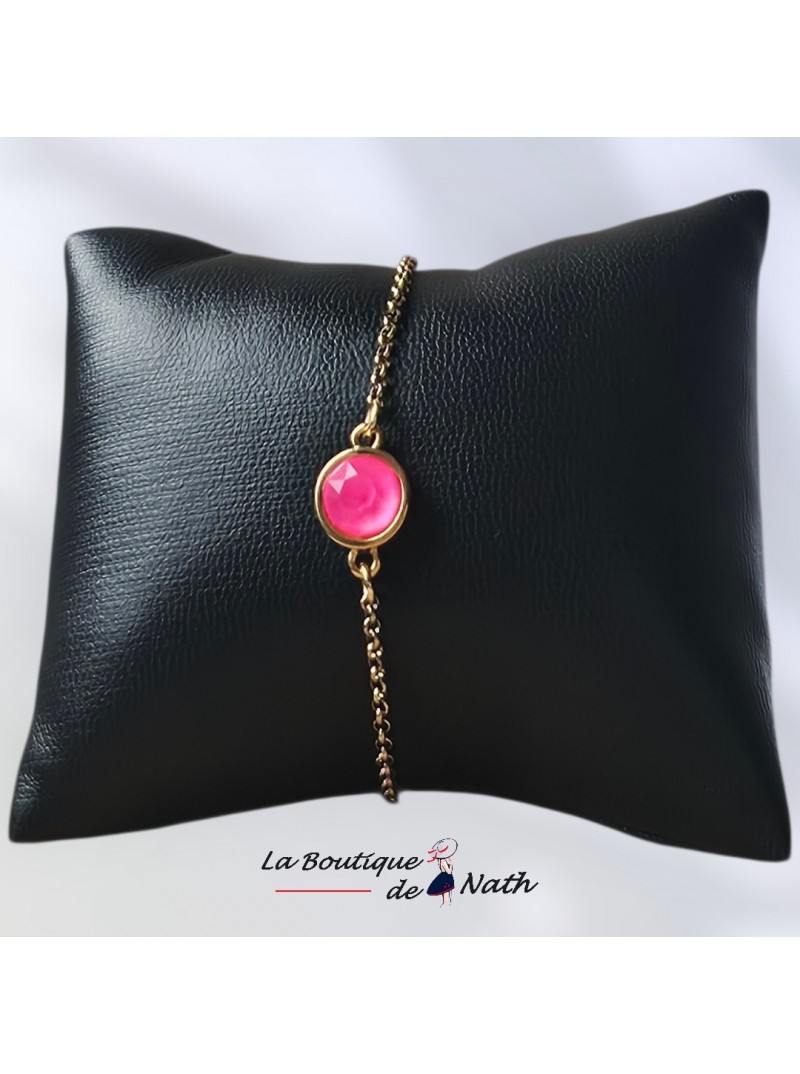 Bracelet acier réglable avec perle de serrage agrémenté d'un pierre cristal de 8 mm