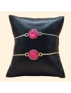 Bracelet acier réglable avec perle de serrage agrémenté d'un cabochon acrylique coloré de 12mm