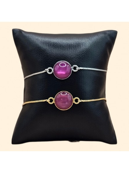 Bracelet acier réglable avec perle de serrage agrémenté d'un cabochon acrylique coloré de 12mm