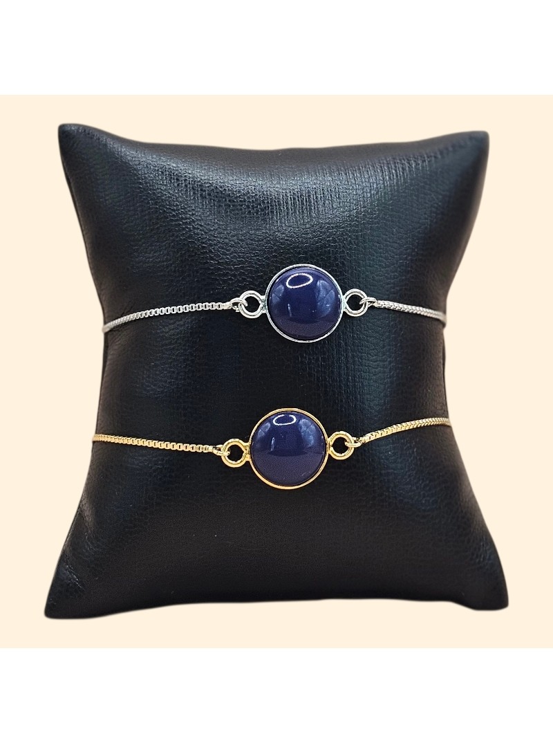 Bracelet acier réglable avec perle de serrage agrémenté d'un cabochon acrylique coloré de 12mm