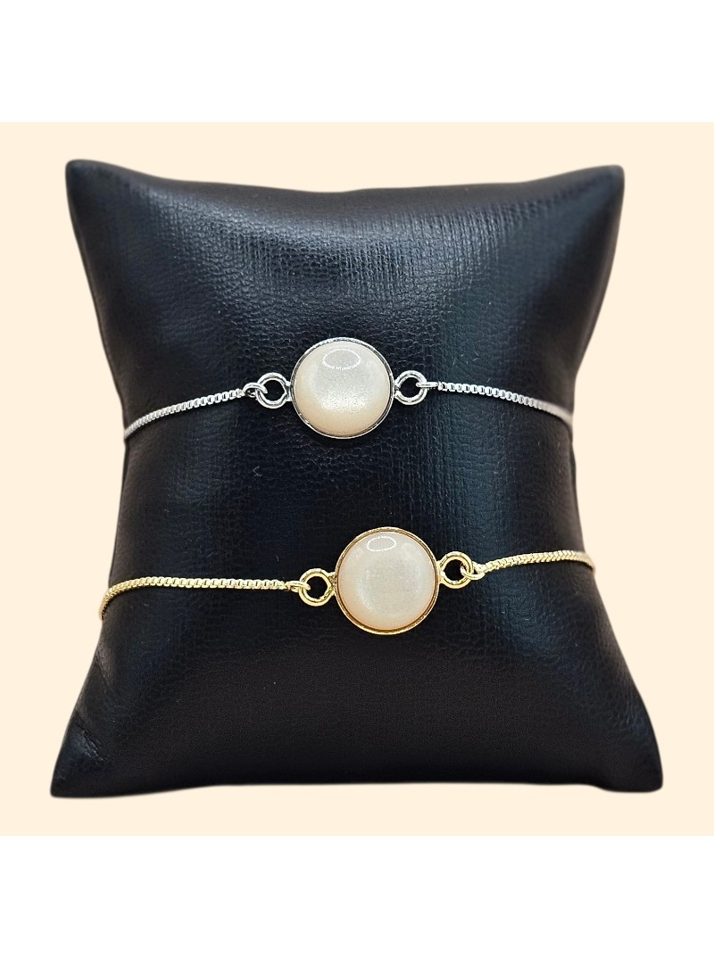 Bracelet acier réglable avec perle de serrage agrémenté d'un cabochon acrylique coloré de 12mm